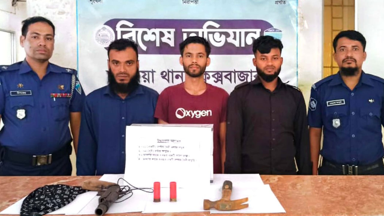 মহেশখালীতে পুলিশের অভিযানে জেটিঘাট থেকে অস্ত্রসহ নারী-পুরুষ আটক