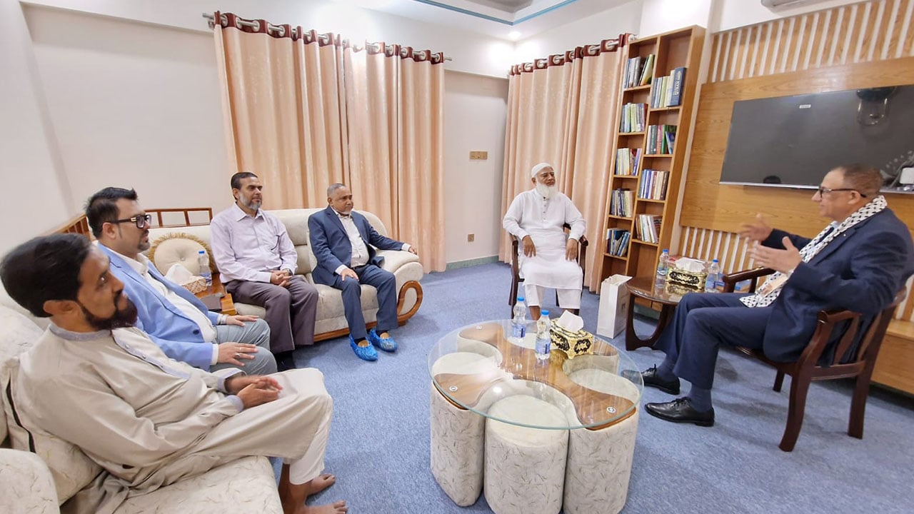 বাংলাদেশে নিযুক্ত ফিলিস্তিনের রাষ্ট্রদূত ইউসুফ সালেহ ওয়াই রামাদান জামায়াতে ইসলামীর আমির ডা. শফিকুর রহমানের সঙ্গে সৌজন্য সাক্ষাৎ ও মতবিনিময়