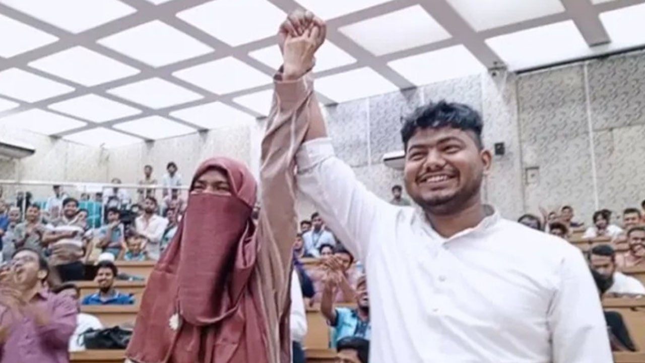 ডাকসু নির্বাচনে একইসঙ্গে জয় পেয়েছেন শিবির সমর্থিত প্যানেলের এক দম্পতি। ডাকসুর ইতিহাসে স্বামী-স্ত্রীর প্রার্থী হওয়ার নজির নেই। বিজয়ী দম্পতির