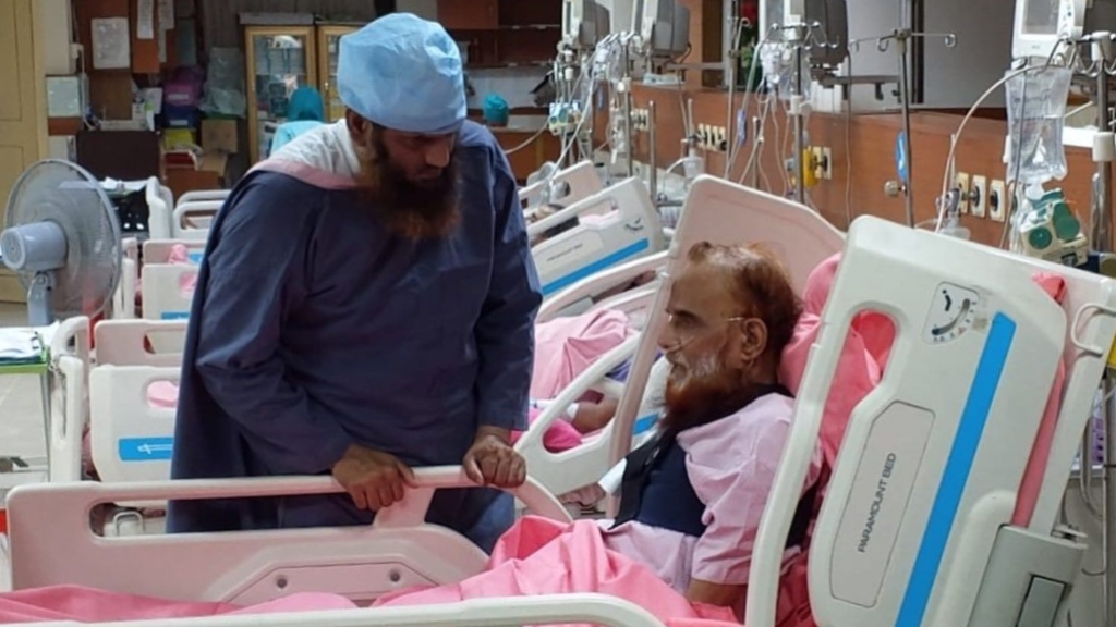 অসুস্থ মাওলানা তাফাজ্জল হক আজিজকে হাসপাতালে দেখতে ইবনে শাইখুল হাদীস
