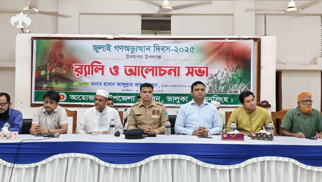 ঐতিহাসিক ‘জুলাই গণঅভ্যুত্থান দিবস’ উপলক্ষে ময়মনসিংহের ভালুকা উপজেলায় অনুষ্ঠিত হয়েছে দিনব্যাপী আলোচনা সভা ও র্যালি। ছাত্র-জনতার সম্মিলিত আন্দোলনের গৌরবগাঁথা